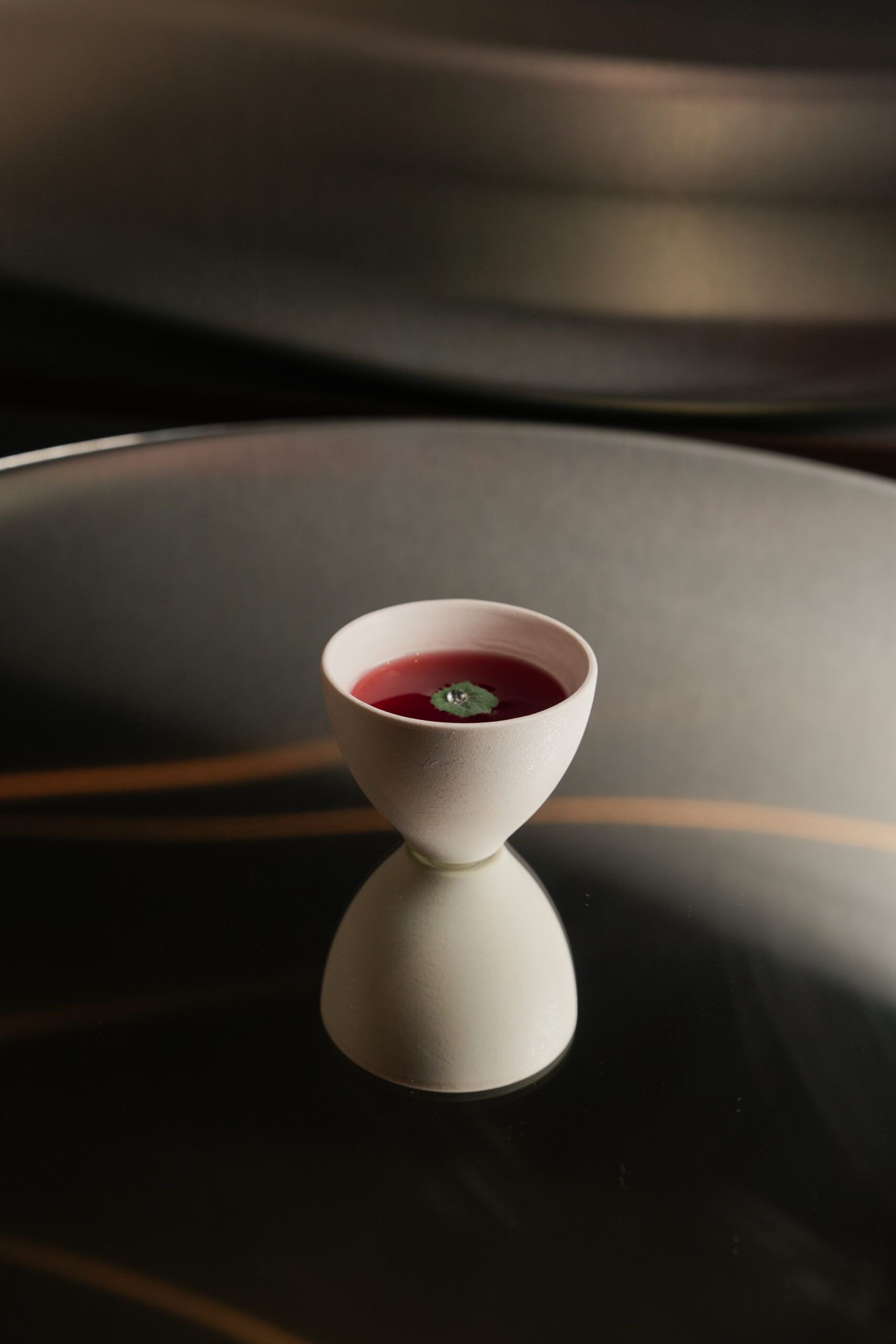 Ouzo/ Strawberry Gin/ Vermouth mix/ Elderflower/ Mastiha/ Balsamic
